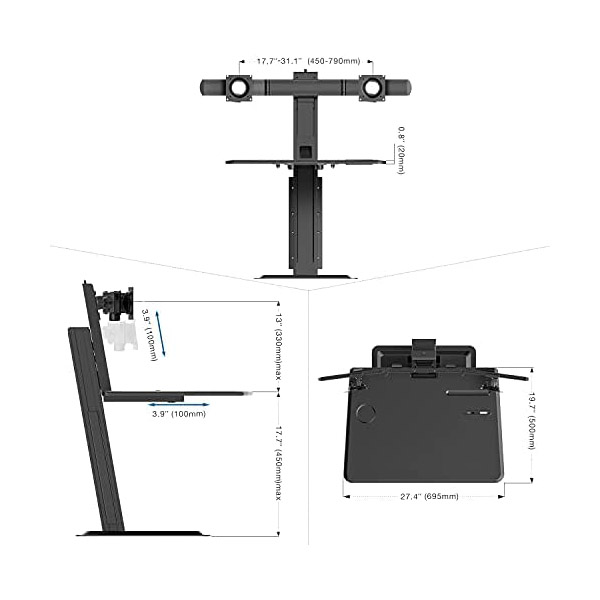 Βάση γραφείου για δύο οθόνες έως 27'' έκαστη και πληκτρολόγιο PC