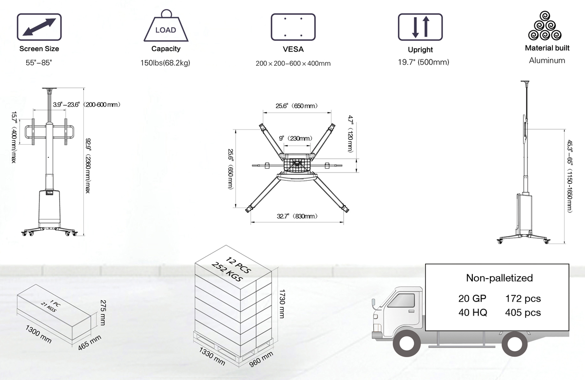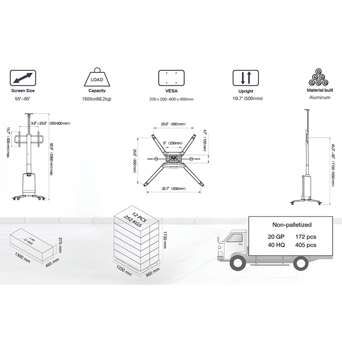 - Για οθόνες TV από 43'' έως 85''
