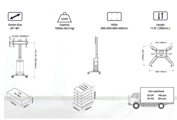- Ηλεκτροκίνητη ρύθμιση καθ΄ ύψος από 1,20 έως 1,50m