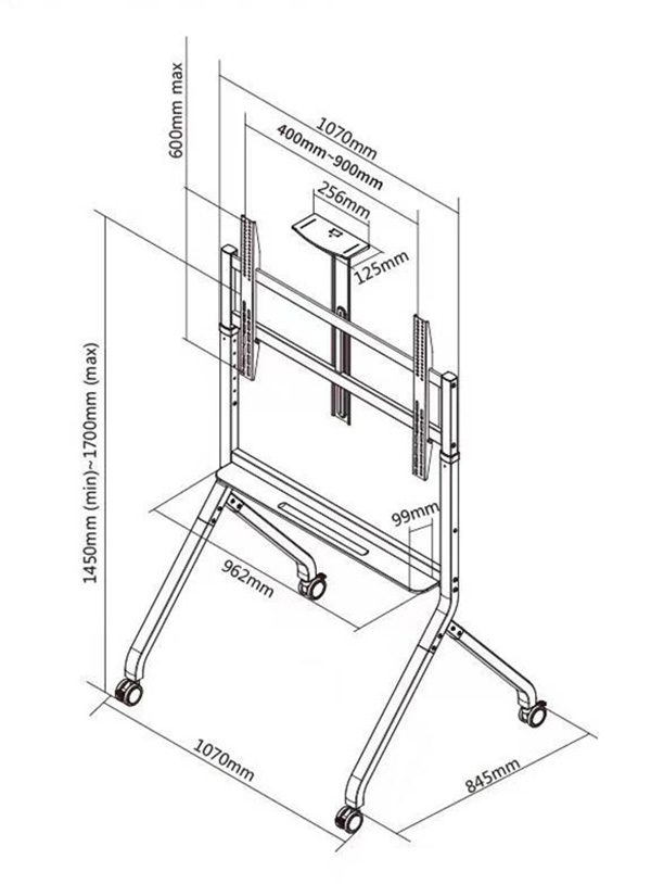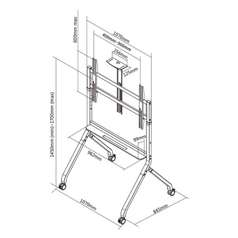 - Ρυθμιζόμενο ύψος οθόνης από 1,45 έως 1,70m