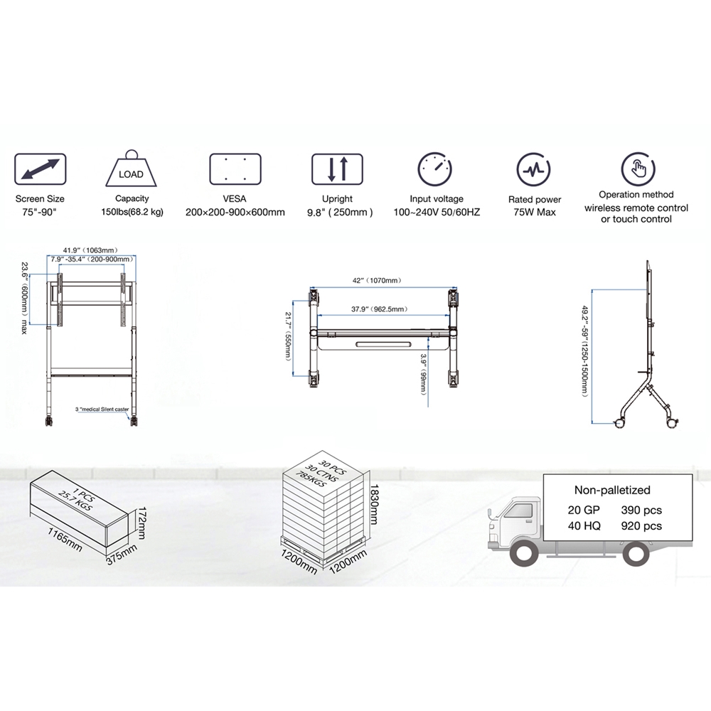 - Για οθόνες TV από 65'' έως 90''