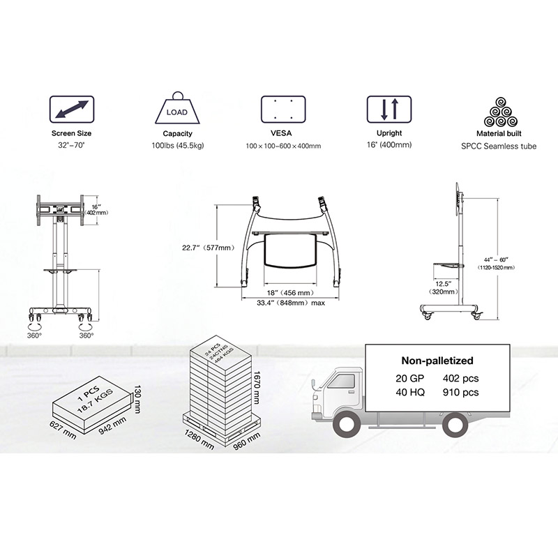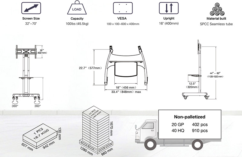 - Ρυθμιζόμενο ύψος οθόνης έως 1,52m
